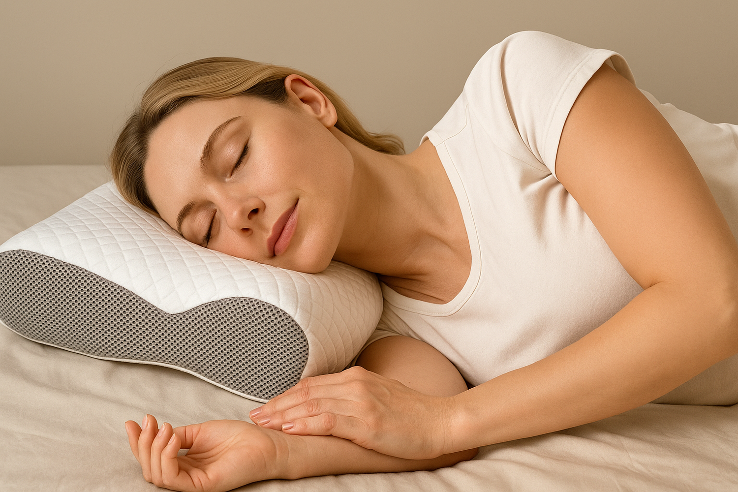 When your pillow flattens or tilts your spine out of line, your body spends the night fighting itself — and you wake up sore and foggy.